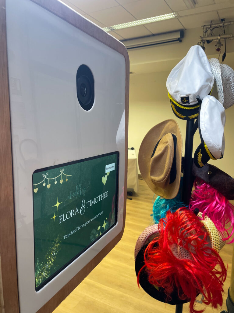 Placée stratégiquement dans la salle de réception, la borne photo est rapidement devenue le point de ralliement des invités, créant un pont entre la décoration soignée et l’envie de s’amuser.